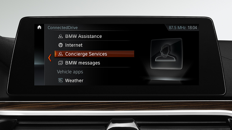 The Concierge Service connects the driver to a BMW Call Centre agent at the push of a button. The agent can locate a particular restaurant, the nearest cash dispenser or an emergency pharmacy and send the address details directly to the BMW navigation system.
